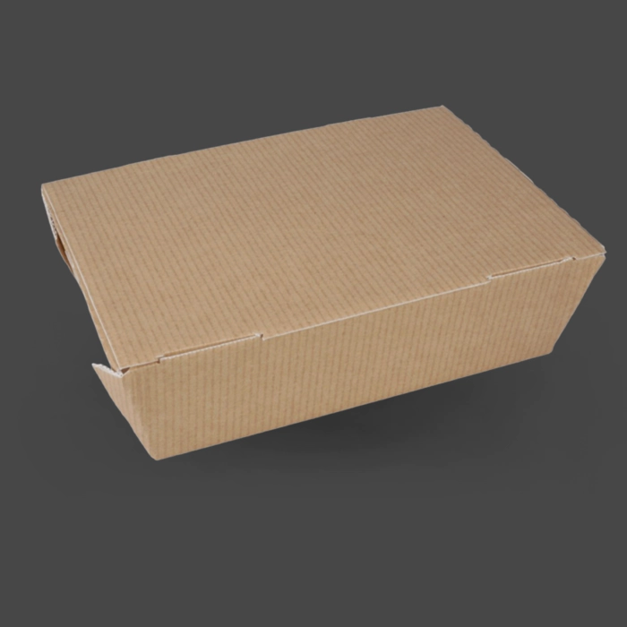 These large 1200ml food-to-go takeaway boxes offer a durable, practical and fully recyclable solution for hot and cold meals. Designed with a natural Kraft brown exterior and a clean white interior, they deliver strong visual presentation while maintaining excellent strength and structure. The leak-proof and grease-resistant lining keeps meals secure during transport, preventing oils or sauces from seeping through. Built-in ventilation slots help release steam, ensuring hot foods stay crisp rather than becoming soft or “sweaty.” With no window, these boxes provide enhanced heat retention and improved insulation, making them ideal for delivery, catering and grab-and-go meals where product visibility is not essential. Perfect for pasta dishes, rice bowls, noodles, salads, curries, roast dinners and generous takeaway portions. Supplied in packs of 120, these boxes are a dependable and environmentally conscious choice for cafés, delis, street food vendors, food markets and professional catering services.