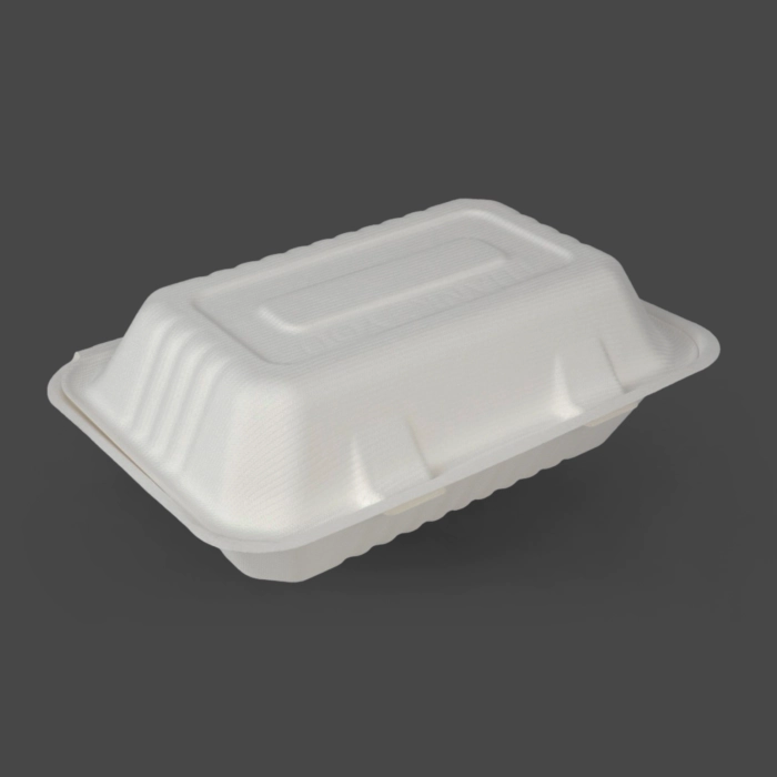 These 9 x 6 inch bagasse food boxes provide a strong, compostable option for serving hot or cold takeaway meals. Made entirely from natural sugarcane fibre, they offer a fully biodegradable alternative to plastic while remaining durable enough for wet, oily and heat-intensive dishes. The hinged design keeps contents secure, making the box ideal for kebabs, salads, street food portions and lunch servings.