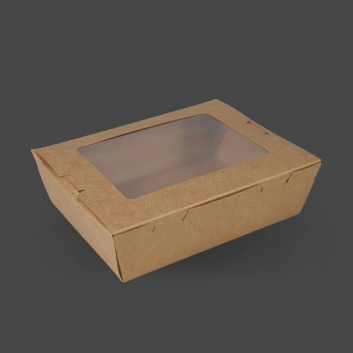 These 900ml medium kraft salad boxes are ideal for larger salads, pasta dishes and cold food-to-go meals. The integrated clear window enhances presentation by showcasing the contents, making them perfect for display fridges and grab-and-go counters. Crafted from strong kraft board, they provide dependable structure to keep food protected during handling and transport. With a natural, professional finish, these boxes are well suited to cafés, delis and catering environments serving fresh, prepared foods. A practical and attractive packaging solution for chilled and ambient takeaway options.