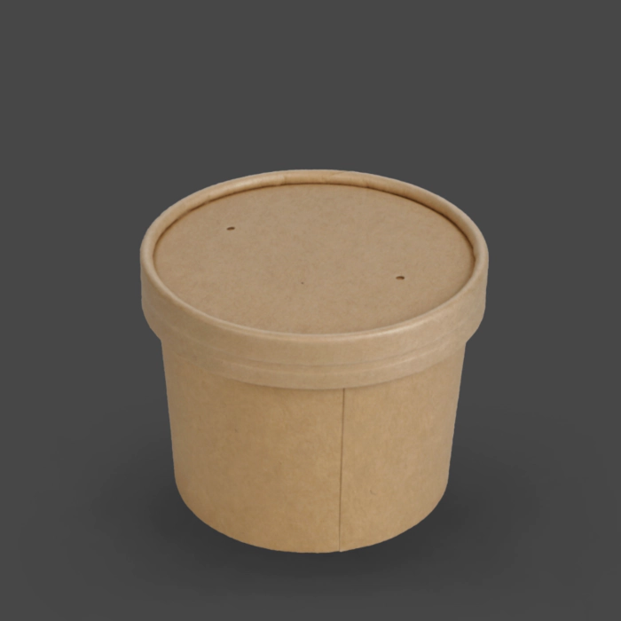 250 x 8oz Kraft Brown Paper Soup Container with Paper Lids