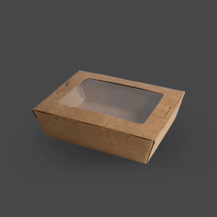 300 x Small Kraft Salad Box With Window 500ml