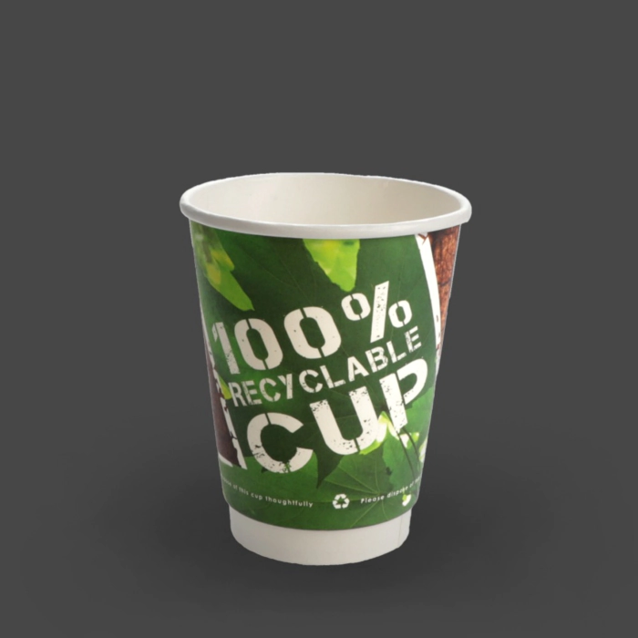 These 12oz double walled paper cups are ideal for serving medium-sized hot drinks such as lattes, cappuccinos, tea and hot chocolate. The insulated double wall construction helps maintain drink temperature while providing a comfortable outer layer, reducing heat transfer to hands and removing the need for additional sleeves. Finished with a clean, professional appearance, they suit a wide range of environments including cafés, catering outlets, offices and events. Manufactured from 100% recyclable materials, they combine reliable everyday performance with a more responsible packaging choice. Strong, practical and designed for busy service, they offer a dependable solution for takeaway hot drinks.