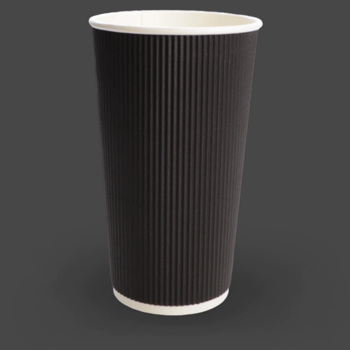 500 x 20oz Black Triple Wall Ripple Paper Cups for Hot Drinks