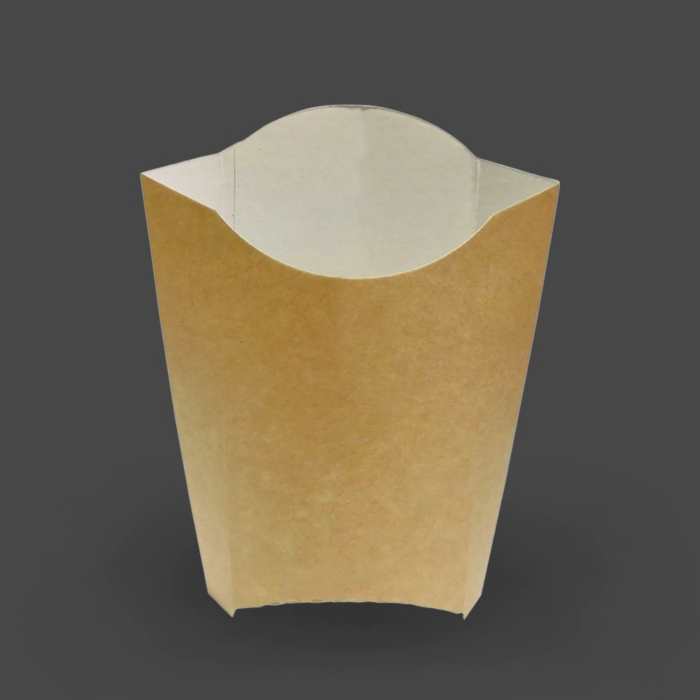 These kraft brown cardboard chip scoops are ideal for serving chips, fries and other hot snacks in takeaway and event settings. The open scoop design allows for quick filling and easy handling, making them perfect for busy food stalls and catering operations.